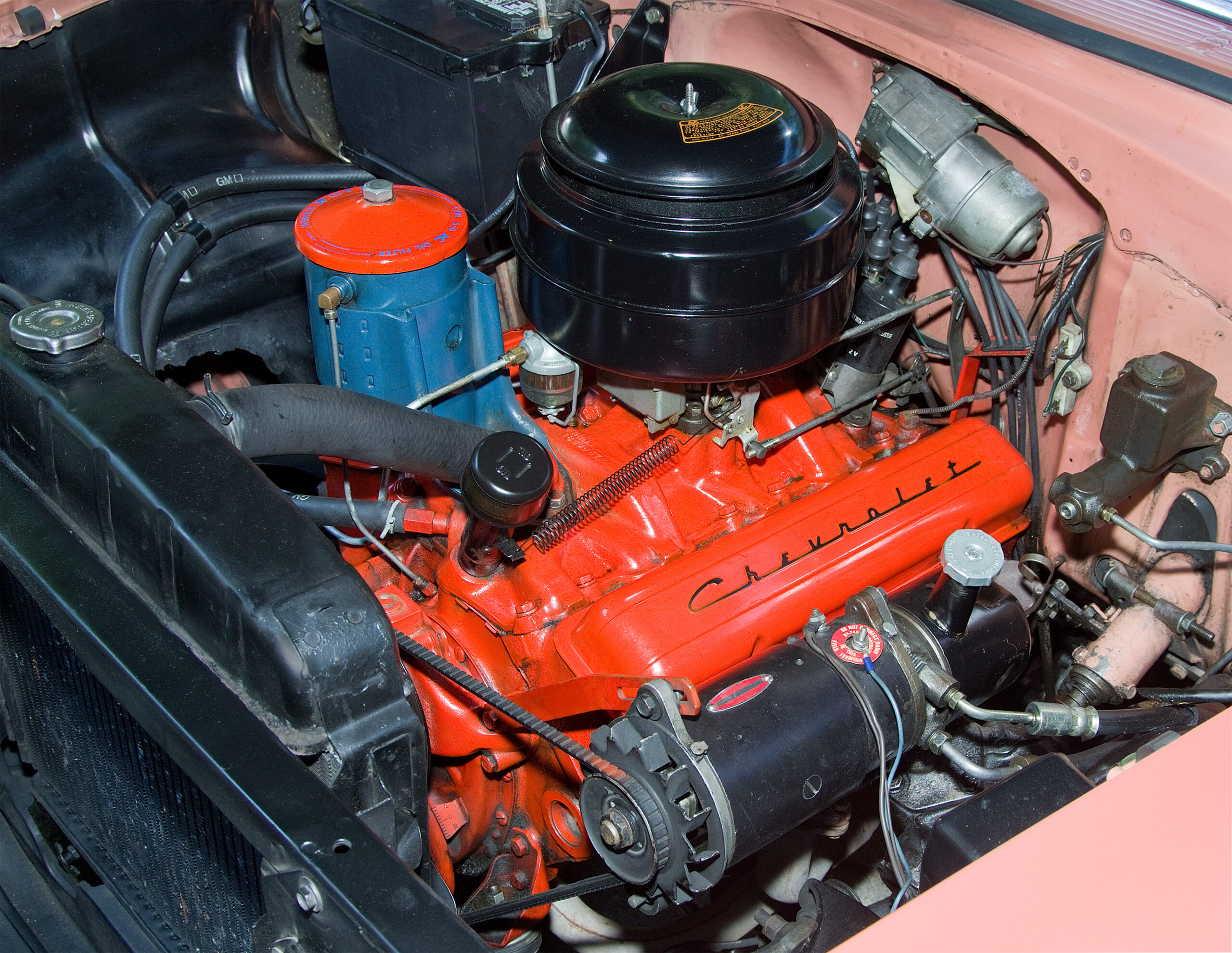 The replacement and adjustment of distributor parts is fairly easy on many cars, as the distributor is mounted at either the side or at the front of the engine. Except on my ’55 Bel Air, in which the distributor at the rear of the engine and snug up against the firewall. One must either have really long arms or lie atop the engine to reach it.